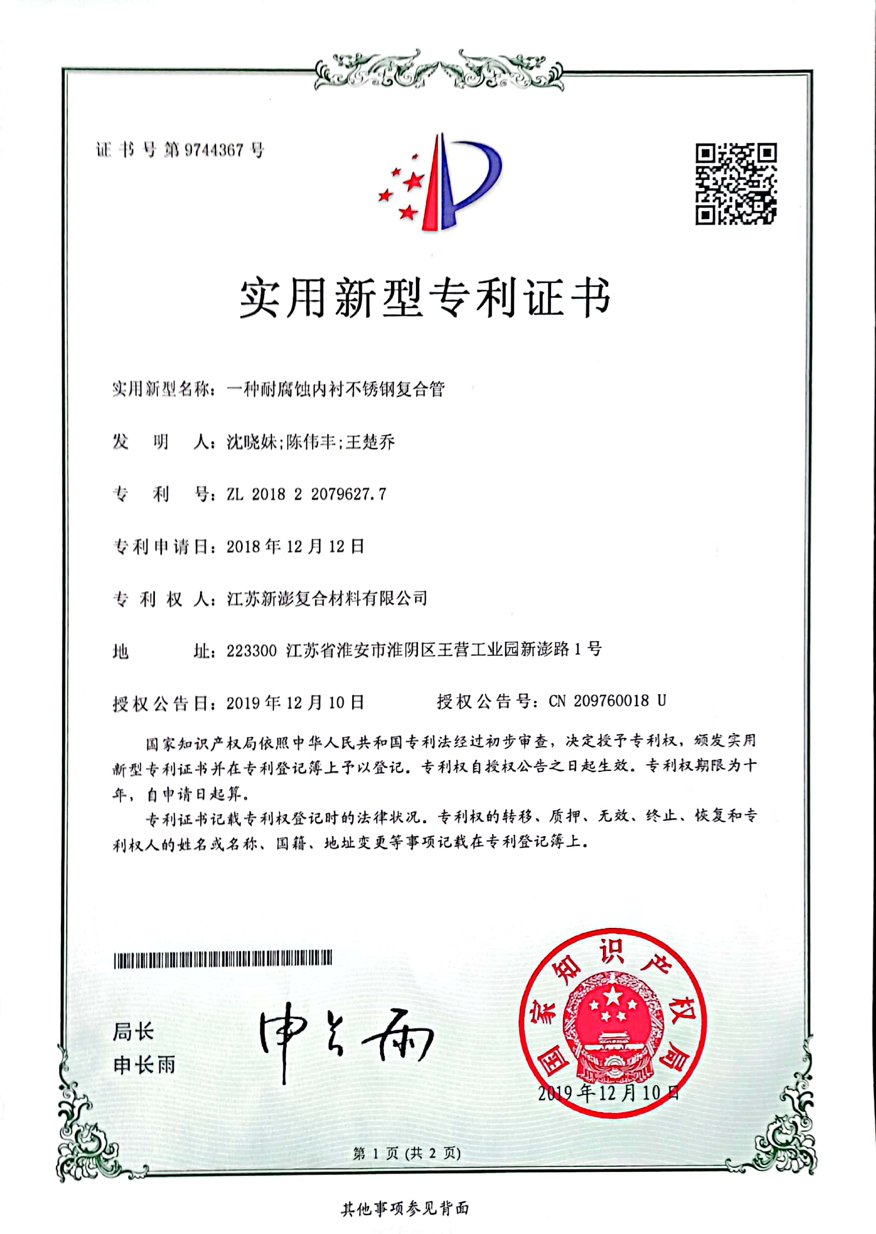 在復合材料領域持續深耕并屢創佳績的江蘇新澎復合材料有限公司,近日宣布了一項重大技術創新成果——成功研發并量產外復銅內襯低碳鋼管,這一新型管材的推出,不僅標志著公司在高端管材制造領域的又一次飛躍,也為客戶提供了更加廣泛、高性能的管材選擇。 長期以來,江蘇新澎復合材料有限公司以其卓越的生產能力和技術實力,在DN15-2000規格內襯不銹鋼復合管市場占據領先地位。然而,公司并未止步于此,而是緊跟市場需求變化,不斷加大研發投入,致力于技術創新與